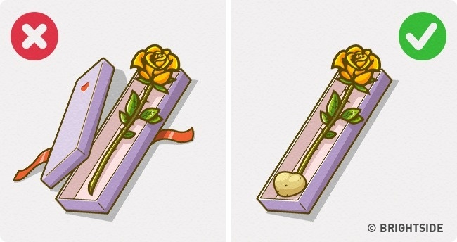 Çiçekleri patates kullanarak bir hafta boyunca taze tutabilirsiniz. Çok basit bir şekilde çiçek saplarının uçlarına bir patates koyun.