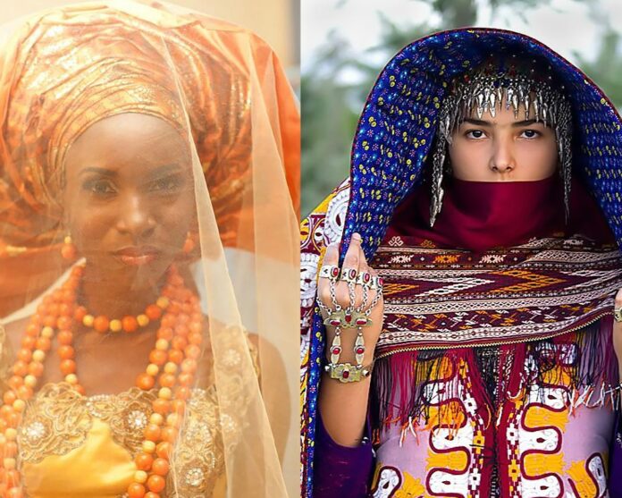 Onların geleneksel düğün kıyafetleri bizimkilere hiç ama hiç benzemiyor. Rengarenk kıyafetlerine ek olarak; kimi yüzünü mücevherlerle, kimi tüllerle, kimi de boyalarla süslüyor.