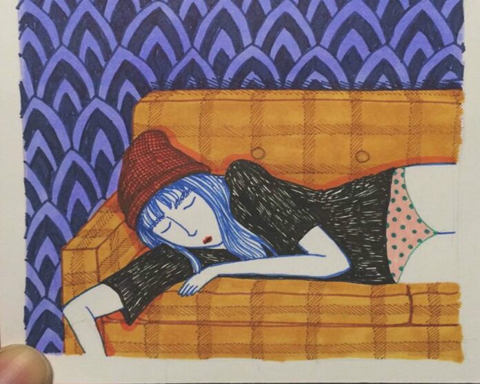 Sanatçı, çok filtreli Instagram fotoğrafları, Snapchat filtreleri gibi hayatımızı ele geçiren sosyal medya kanallarının yanı sıra; özellikle kadınların en doğal hallerini göstermek istediğini söylüyor. Onun çizimlerindeki kadınlar, duş almak, yatakta bir şeyler yemek, pantolonsuz bir şekilde evin içinde dolanmak, arkadaşlarla TV karşısında tembellik yapmak gibi oldukça sıradan şeyler yapıyorlar. Diğer bir deyişle, kimse onları izlemediğinde davrandıkları gibi davranıyorlar. 🙂